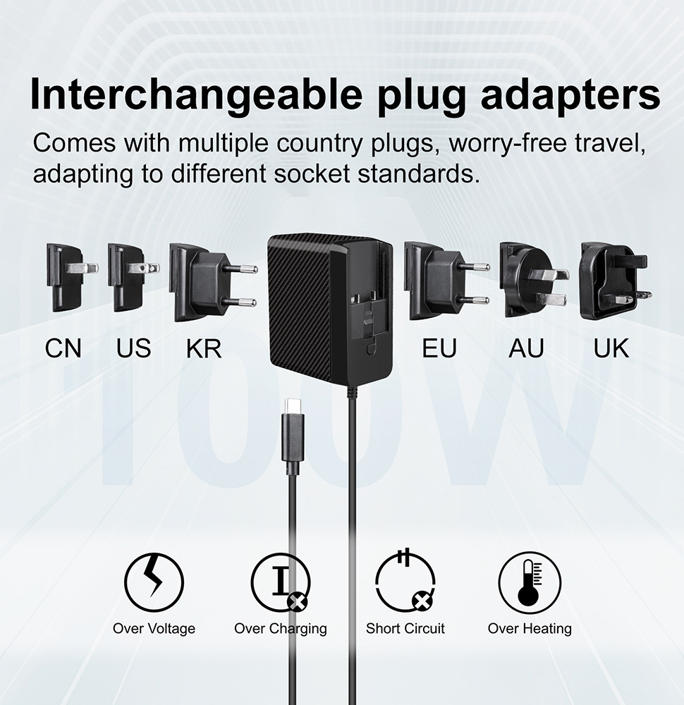 6. Interchangeable plug adapters: Comes with multiple country plugs, worry-free travel, adapting to different socket standards.