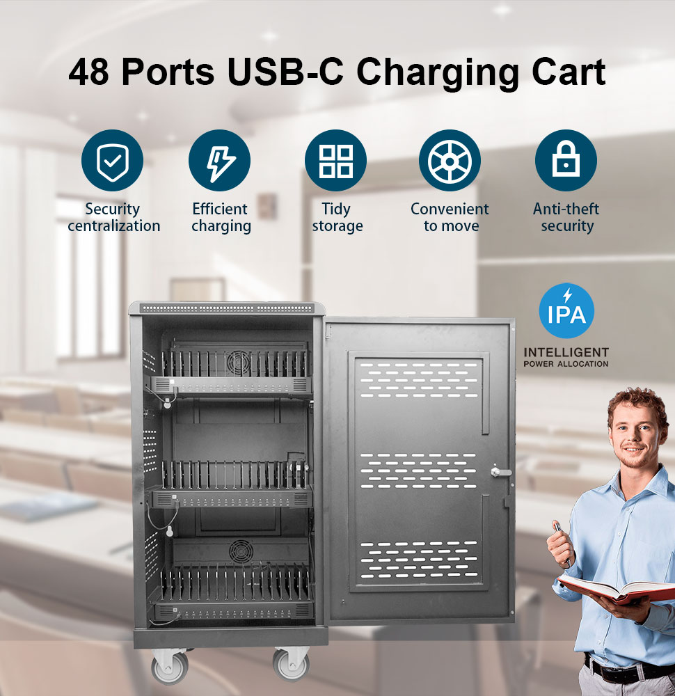 4.IPA Charging and Thermal Management: The USB-C charging station uses IPA intelligent charging mode to make the charging cabinet more stable, reliable, and durable; at the same time, it integrates thermal sensors and fan control to maintain an appropriate temperature inside the cabinet and enhance charging stability.