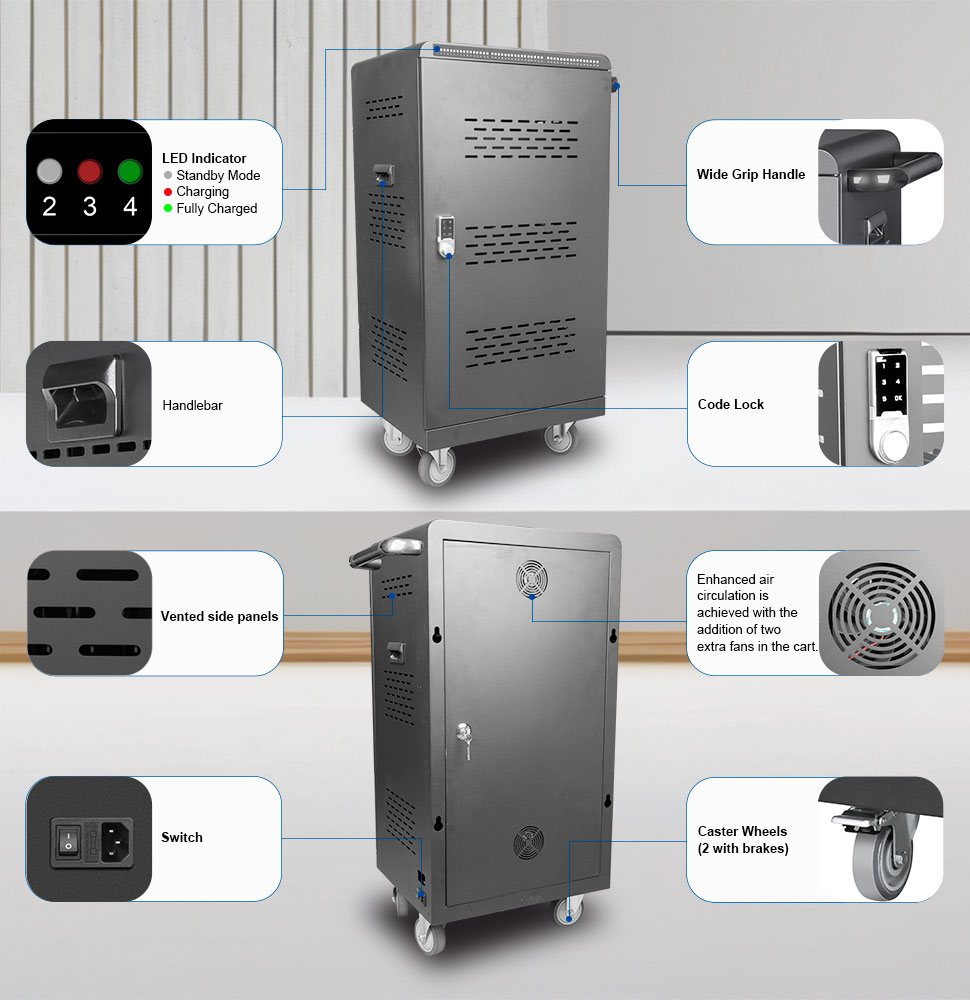 The USB-C charging cart is suitable for Education, Corporate, and Public Service sectors: Education includes smart classrooms, computer rooms, and language laboratories across primary and secondary schools, colleges, universities, and vocational schools; Corporate covers shared office spaces, IT departments, sales teams, and pre-meeting areas; Public Service encompasses public libraries, electronic reading rooms, training centers, and conference and exhibition centers. It is also ideal for any setting that requires centralized management of a large number of USB-C mobile electronic devices.